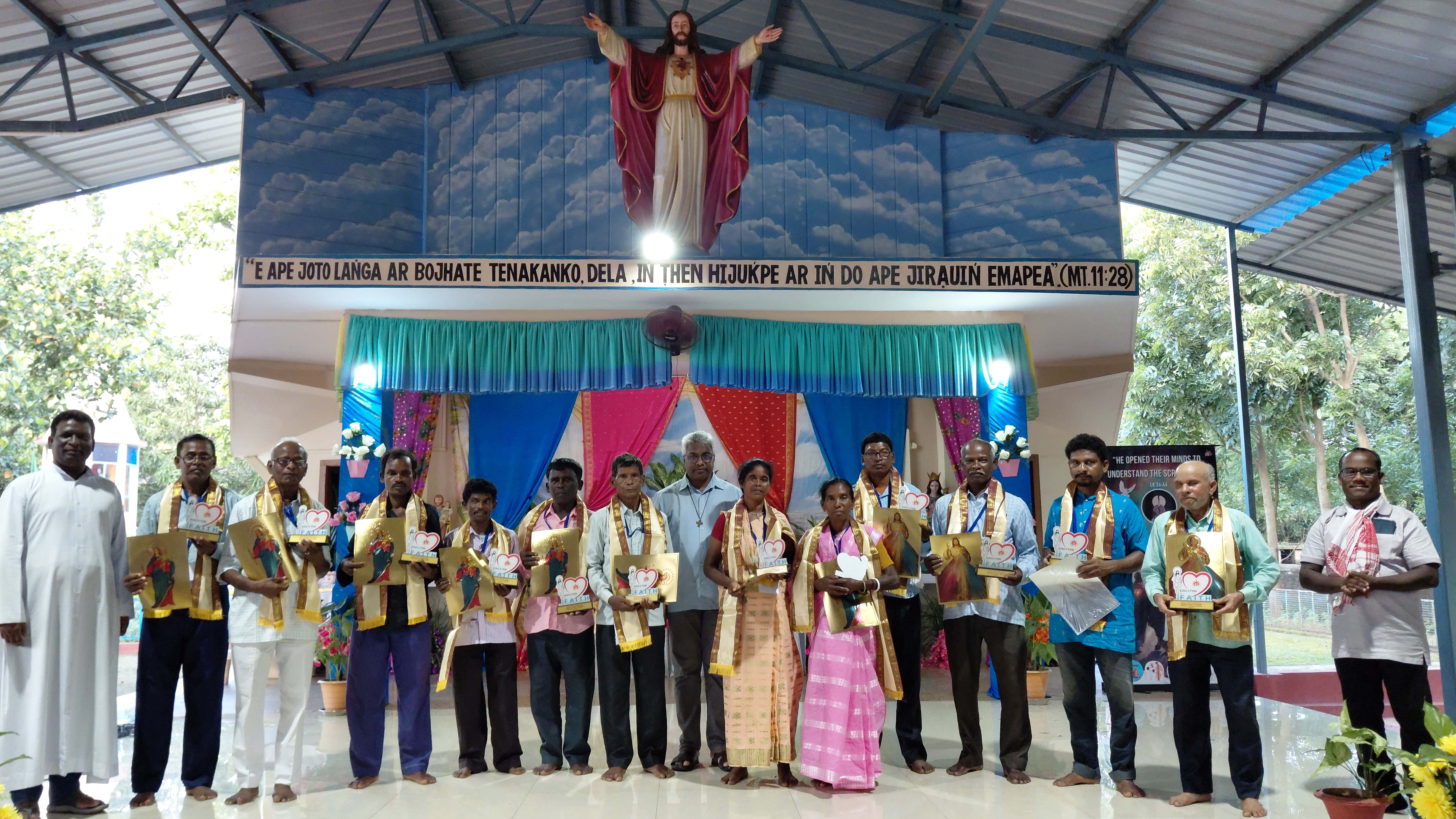 During the on-stage events, catechists who have served for over 25 years in the parishes of Joypur and Barapahari were honoured by Rev. Fr. Joseph Pauria, acknowledging their contributions to catechesis and evangelization.